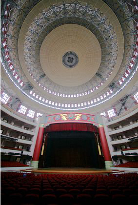 从人民大礼堂的形态来看,它的文化理念是典型的中国风格,但走进大礼堂就会发现,它运用了西方建筑的大跨度结构,它是钢结构、砖木和混凝土结合的混合建筑。因此,人民大礼堂可以视为中西合璧的产物。