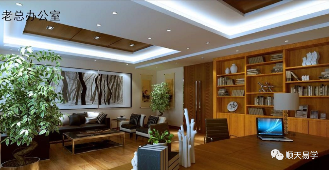 交流中自然少不了对环境的探讨,老总问,办公室布局怎样。我说,你办公桌太靠前,离进门太近。正常情况,你的办公桌应该后退50公分到1米,离门远一点,让座位尽量靠墙,这样才能充分发挥下属的作用。风水有句断语:“何知劳动是模范,桌子拼命往门串。”现在正是这种格局,说明你工作积极性很高,辛苦,乐于付出。老总坦诚地说:“每天工作十多个小时,没有节假日。”
